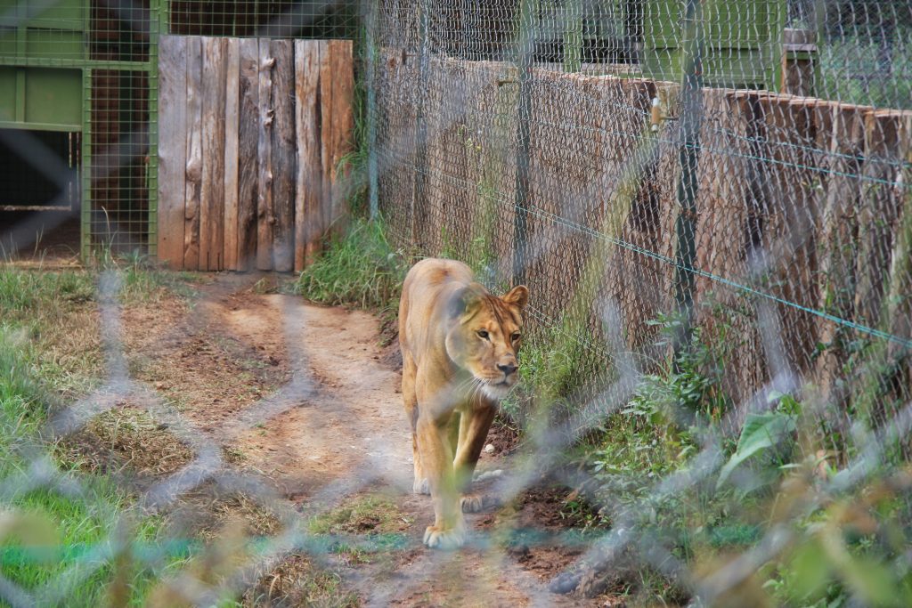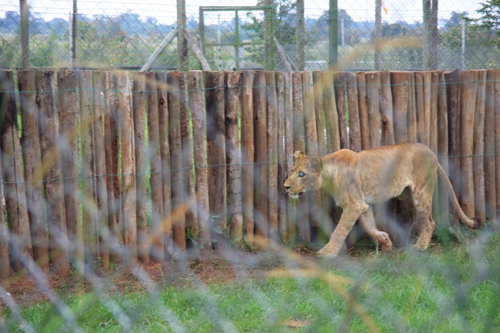 The animals kept here are in good mental and physical conditions, and no obvious physical injuries were seen, so I assumed that they are recovering pretty well. Except one lioness, whose left eye is completely damaged and blind. Her name is Shujaa. She was rescued in late August 2023, when she was discovered by herders near one of the Kenyan villages. For safety concerns of their herds and the people in the village, the herders immediately contacted Lion Landscape, which was very correct. Lion Landscape and Kenya Wildlife Service ( KWS) could not locate this lion’s mother unfortunately, so she was brought to the Animal Orphanage for proper care. After she was brought to the orphanage, a thorough medical examination was conducted to evaluate her conditions. The researchers found out that she has cloudy films covering both eyes, indicating partial or full blindness. Under such situation, Shujaa would be extremely difficult to continue living in the wild. Therefore, she was kept in the orphanage since then.